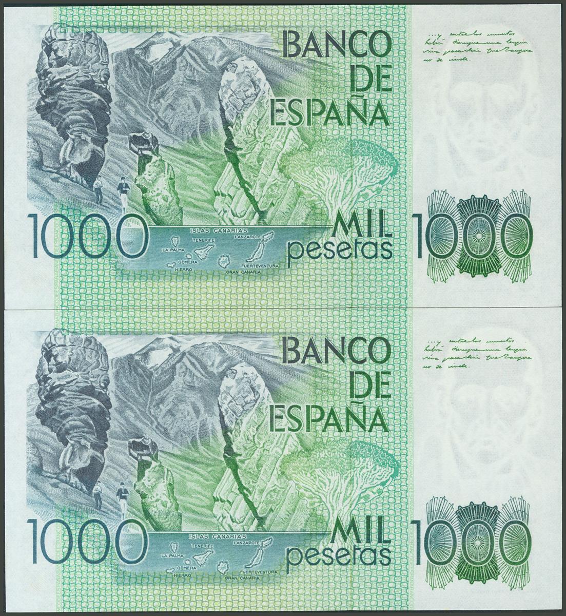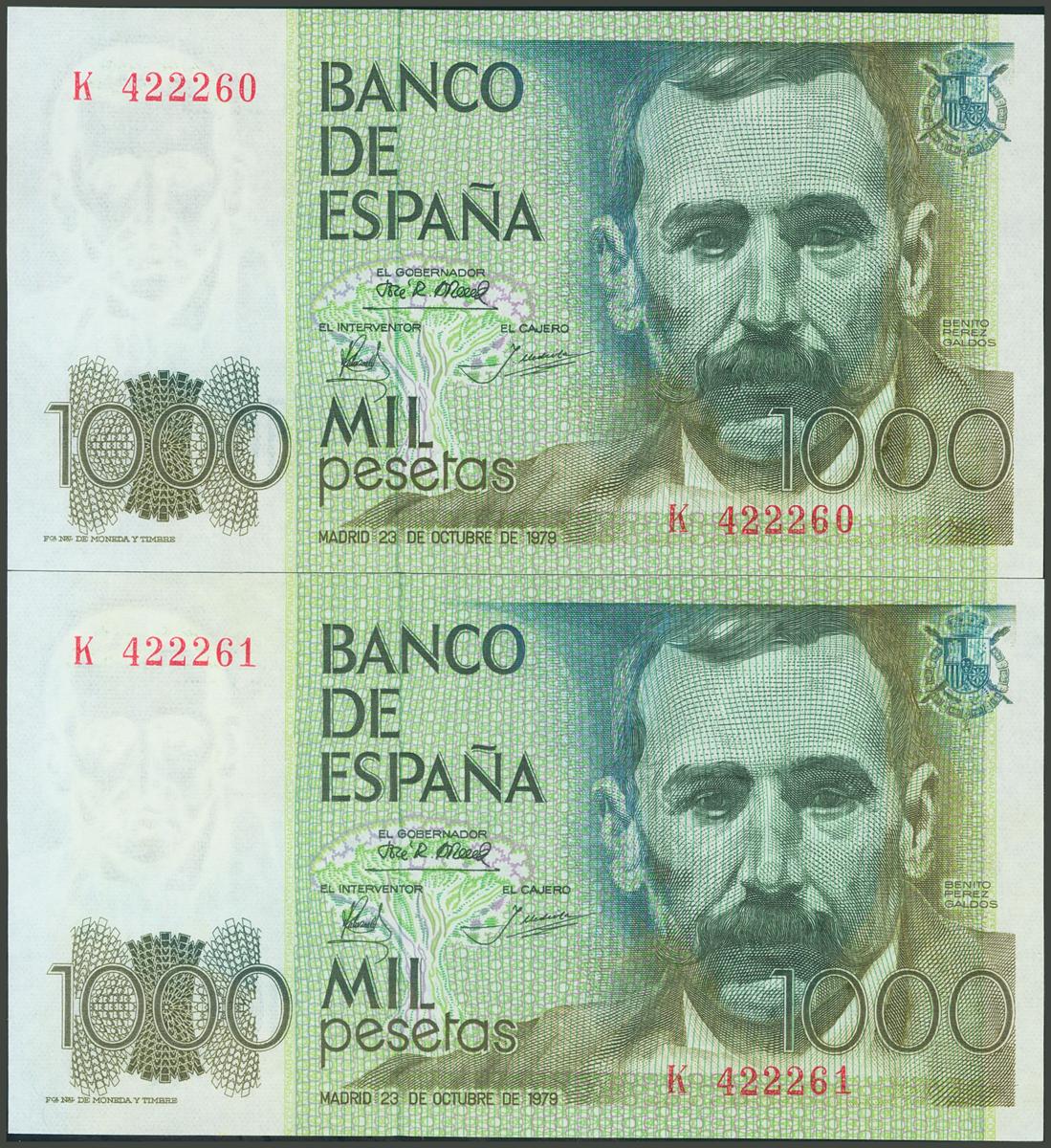 1000 Pesetas. October 23, 1979. Correlative couple. Series K. (Edifil 2017: 477a). Uncirculated.