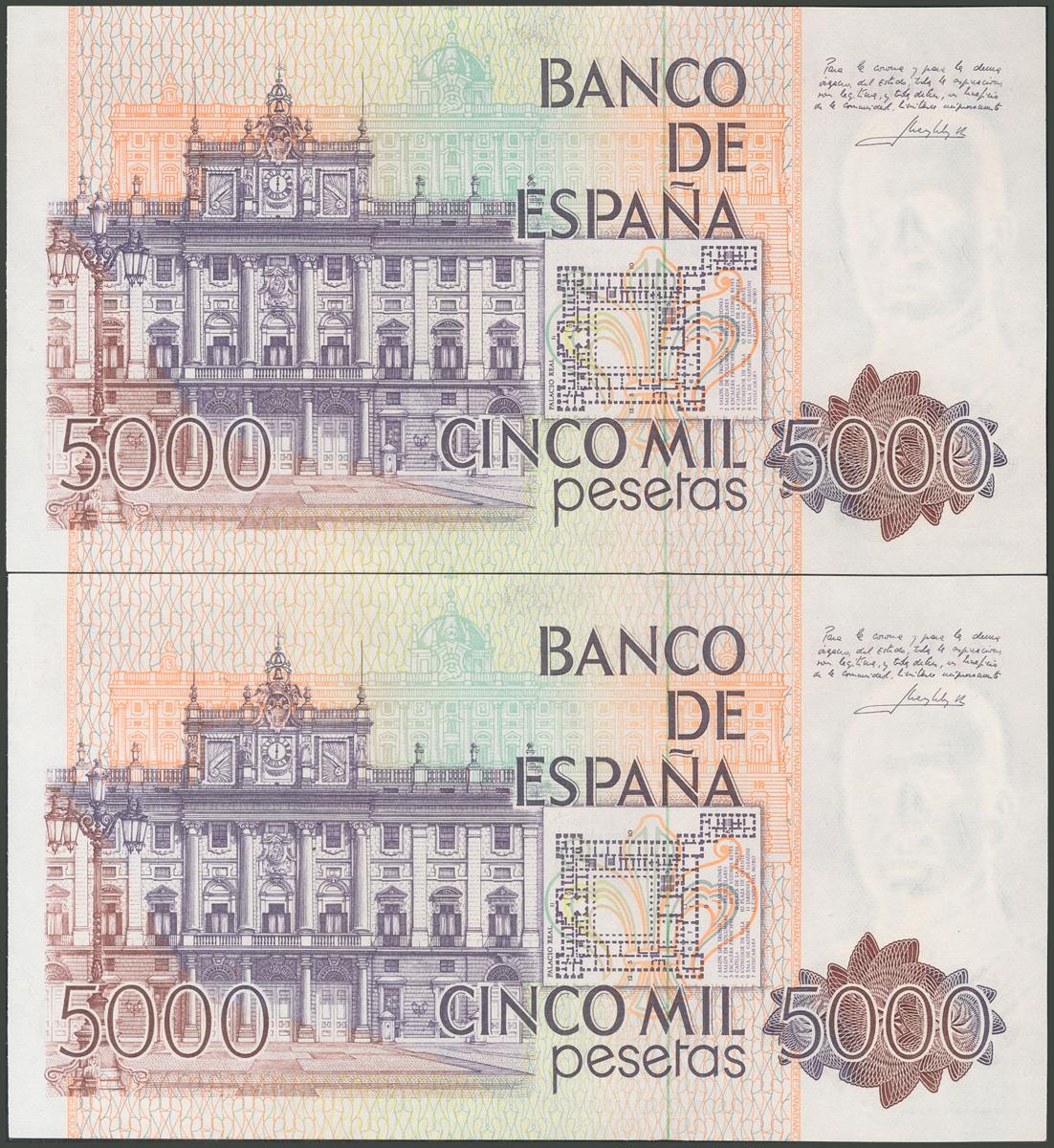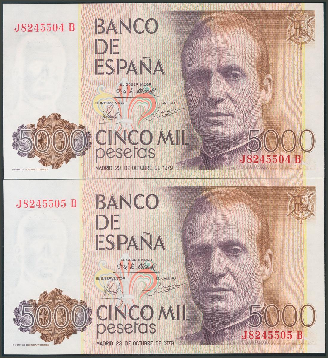 5000 pesetas. October 23, 1979. Correlative couple. JB series. (Edifil 2017: 478). Uncirculated.