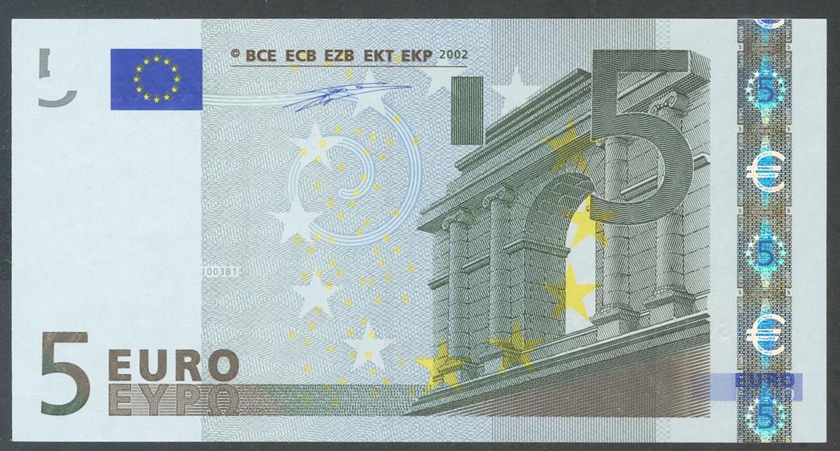 English 5 euros. January 1, 2002. Signature Duisenberg. Serie S (Italy). (Edifil 2017: 486). Uncirculated.