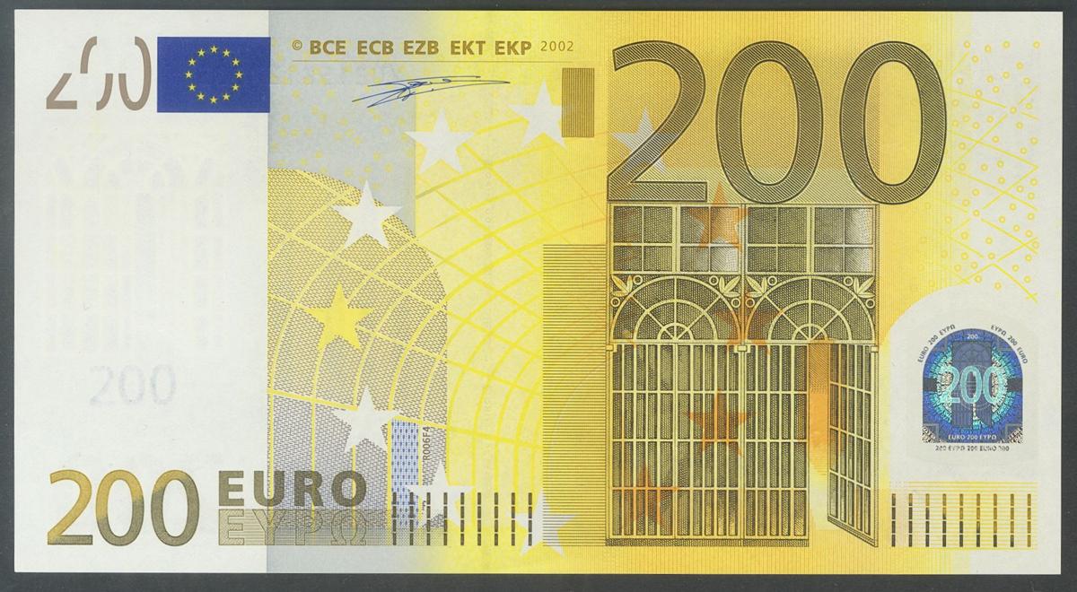 English 200 euros. January 1, 2002. Signature Duisenberg. Series X (Germany). (Edifil 2017: 491). Uncirculated.