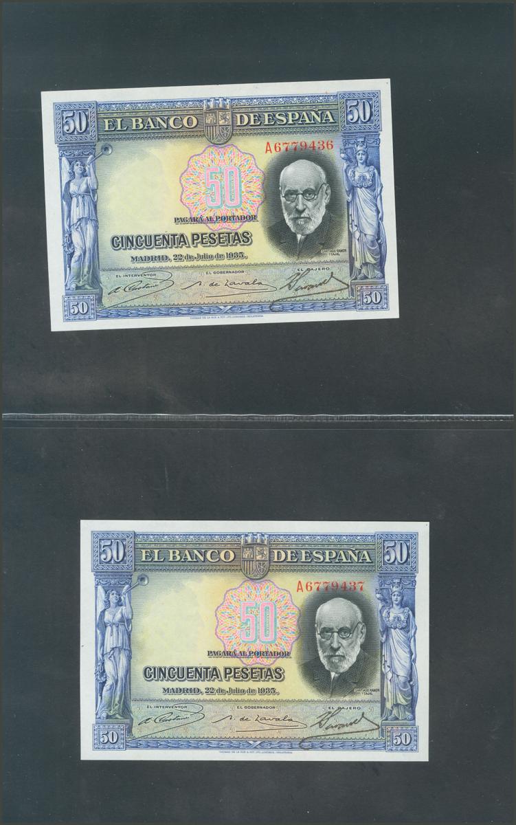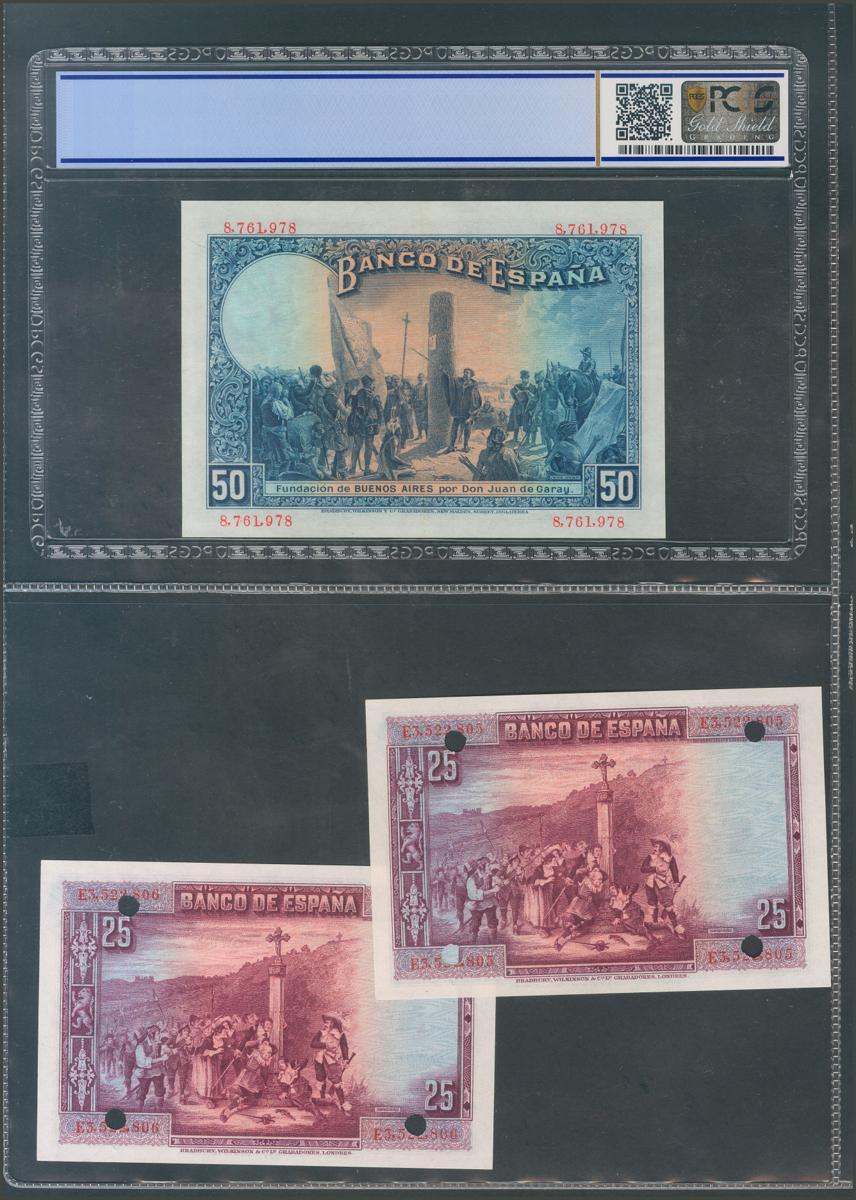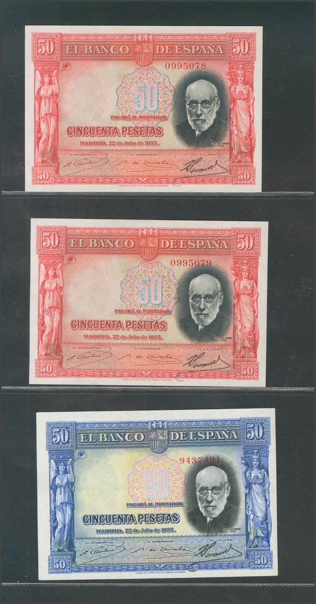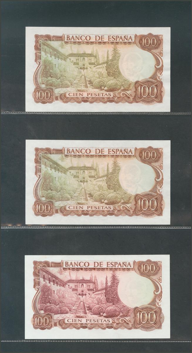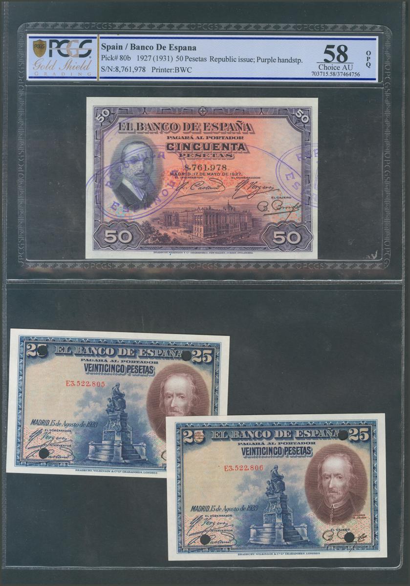 English Curious set of 11 banknotes from the Bank of Spain, from various periods, some of them chemically altered or manipulated to produce supposed varieties. TO EXAMINE.