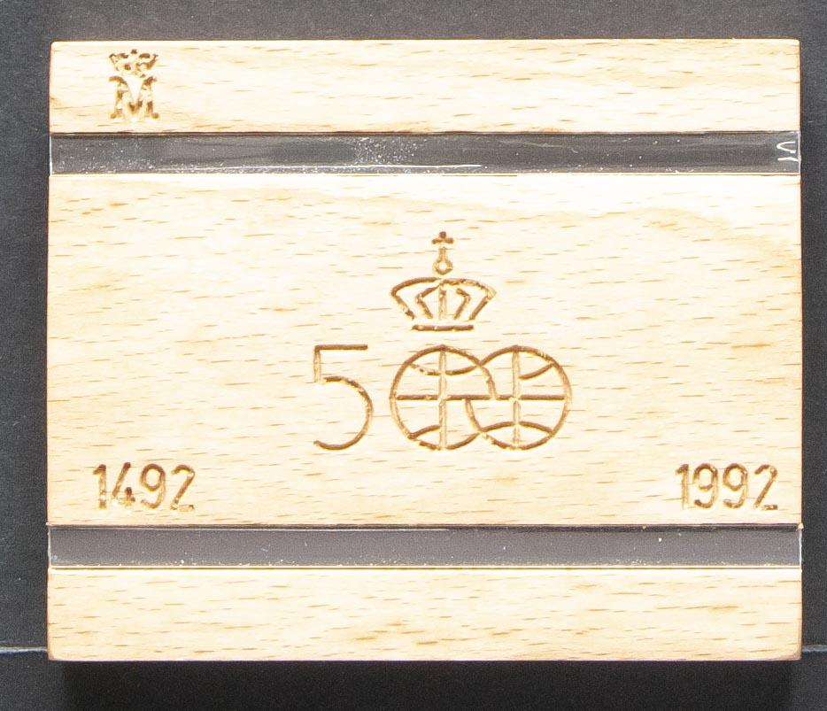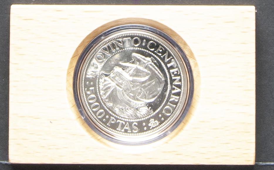 JUAN CARLOS I (1975-2014). 5000 pesetas. (Ar. 54.00g / 40mm). Series I. Fifth Centennial. 1989. FNMT. PROOF. Print run of 150 thousand units. Includes original box and certificate of authenticity.