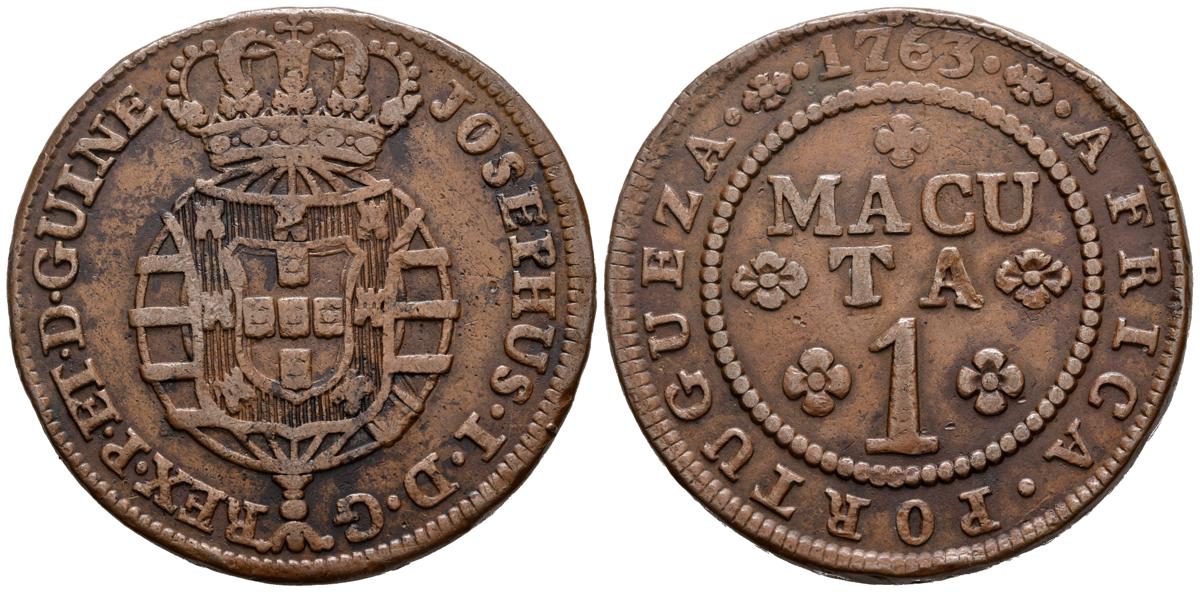 ANGOLA (Portugal). 1 Macuta (Ae. 35.59g / 43mm). 1763. D. José I. (Km # 12). Very Fine.