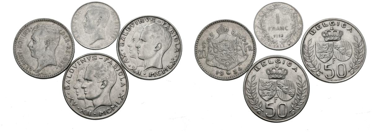 BELGIUM. Nice set of 4 silver coins dated between 1912 and 1960. Different modules as well as states of conservation. TO EXAMINE.