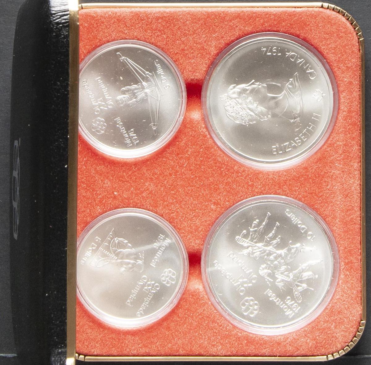 CANADA. Montreal Olympic Games 1976. Complete set consisting of 4 silver coins. 2 of 10 dollars and 2 of 5 dollars. Series 3. Uncirculated. Includes original box and certificate of authenticity.