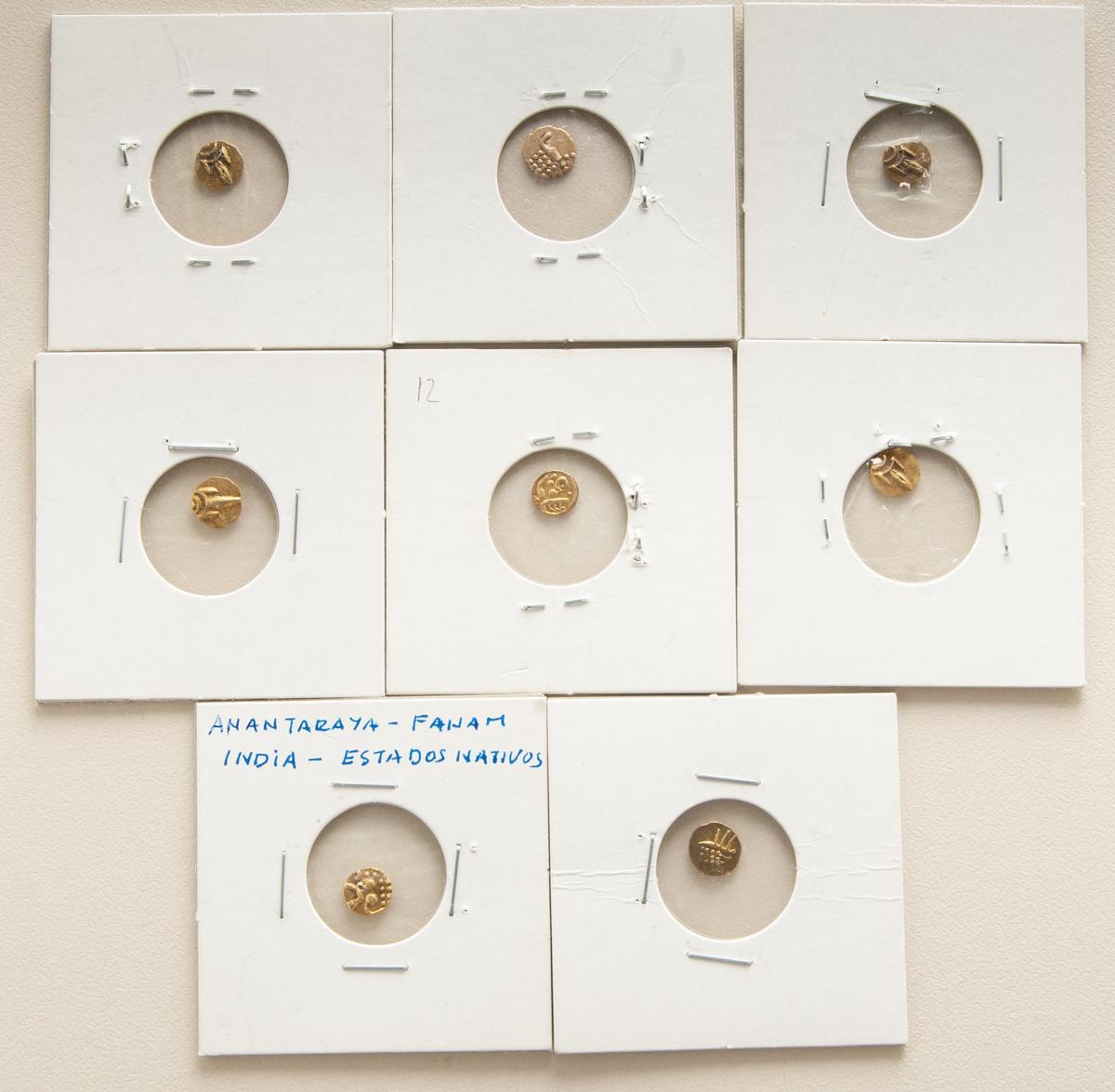 English FOREIGN CURRENCIES. Nice set of 9 Indian gold 1 Fanam coins. TO EXAMINE.