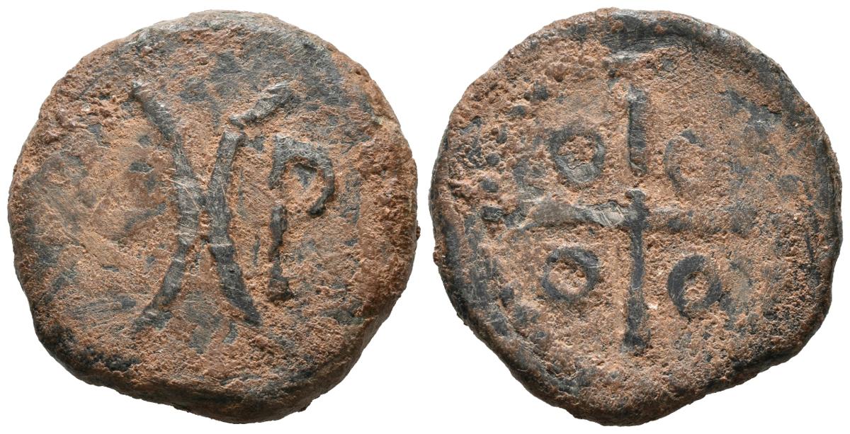 TYPE CROSS. As. (Ae. 13.03g / 27mm). 150-100 BC? (FAB-M1 var). Anv: Two crescent, within one of them P, all within a dotted graph. Rev: Cross with rings in its four quarters, within dotted graph. Very Fine.