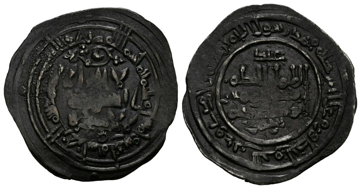 English CALIPHATE OF CÓRDOBA. Al-Hakam II. Dirham. (Ar. 2.53g / 23mm). 352H. Madinat al-Zahra. (You Vives 450). With Abd al-Rahman at IIA. Very Fine. Slightly repainted. Patina.