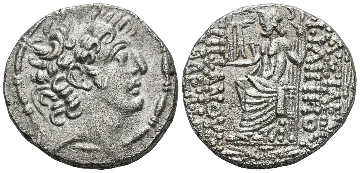 ROMAN GOVERNORS OF SYRIA, Aulus Gabinus on behalf of Philip I Philadelphos. Tetradrachm. (Ar. 14.93g / 26mm). 57-55 BC (RPC 4124). Anv: Diademic male head to the right. Rev: Zeus seated to the left carrying Victory and spear, below Greek monogram, on both sides Greek legend. Good Very Fine.