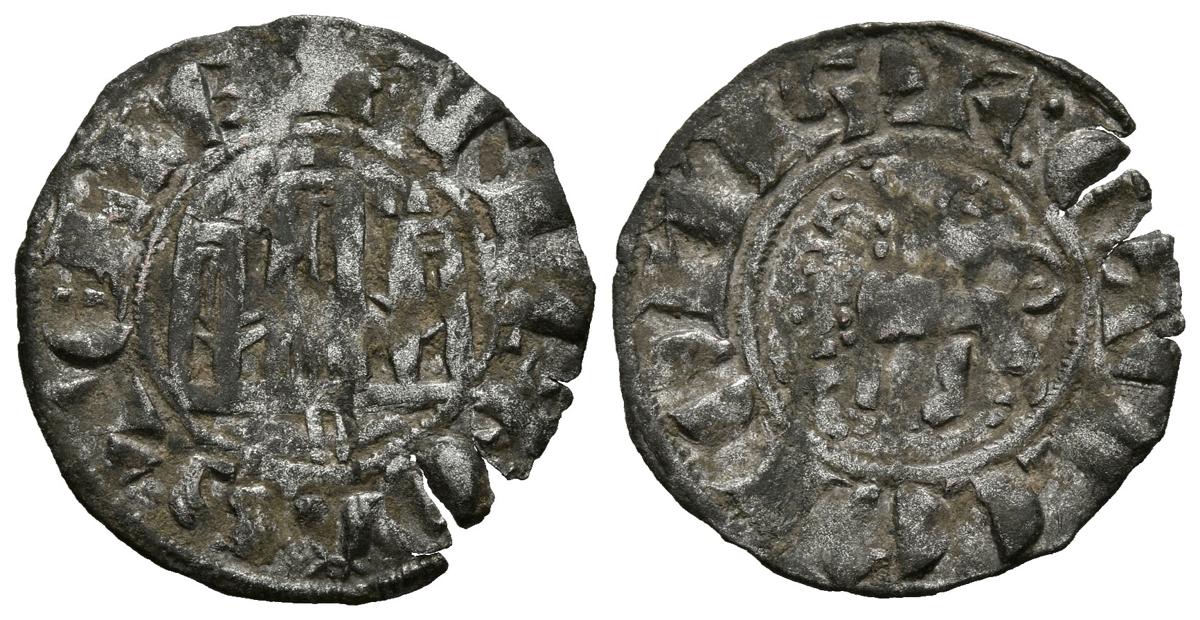 FERNANDO IV (1295-1312). Pepión (Ve. 0.68g / 19mm). S / D. Burgos. (FAB-319.1). Anv: castle within circular beading, below mint mark. Legend: F REGIS CASTELLE. Rev: lion to the left in circular grafila. Legend: ET LEGIONIS. Very Fine.