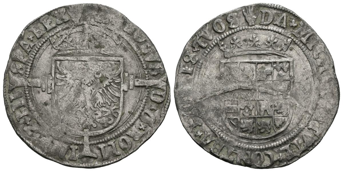 CARLOS I (1516-1556). 1/2 Real (Ar. 2.75g / 26mm). S / D. Antwerp. (Vicenti 484). Mint mark on the front and back. Almost Very Fine.