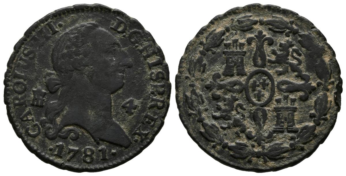 English CARLOS III (1759-1788). 4 Maravedís (Ae. 5.05g / 24mm). 1781. Segovia. (Cal-2019-61). Almost Very Fine.
