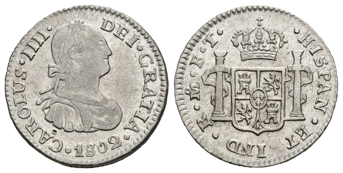 CARLOS IV (1788-1808). 1/2 Real (Ar.1.69g / 16mm). 1802. Mexico FT. (Cal-2019-288). Almost Extremely Fine. Remnants of original shine.