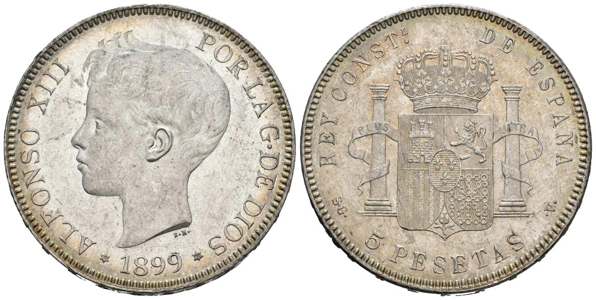 ALFONSO XIII (1885-1931). 5 Pesetas. (Ar. 24.95g / 37mm). 1899 * 18-99. Madrid SGV. (Cal-2019-110). Good Extremely Fine. Beautiful patina.