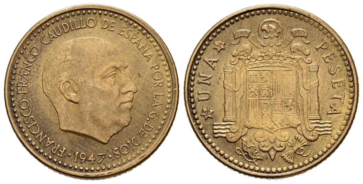 English SPANISH STATE (1939-1975). 1 peseta. (AlAe. 3.73g / 20mm). 1947 * 19-54. Madrid. (Cal-2019-54). Extremely Fine.