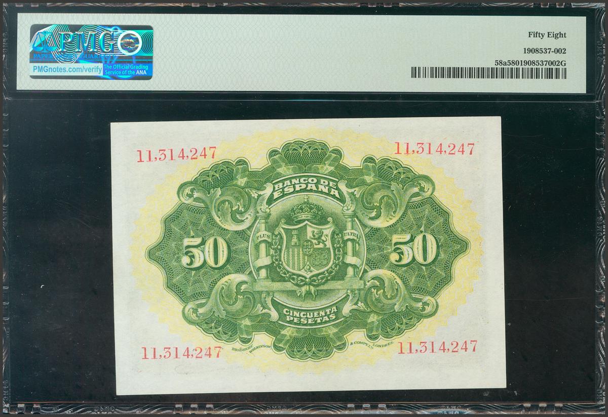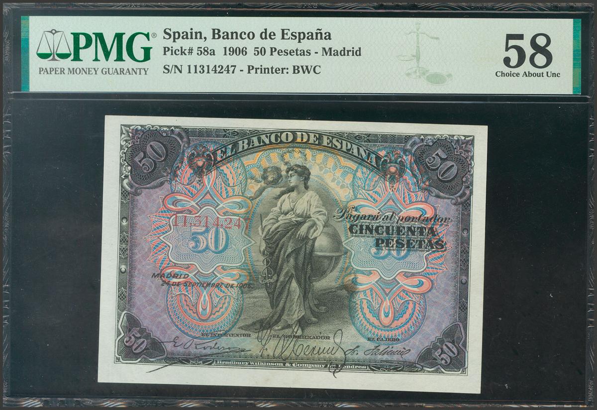50 Pesetas. September 24, 1906. Without series. (Edifil 2017: 315). Good Extremely Fine. PMG58 package.