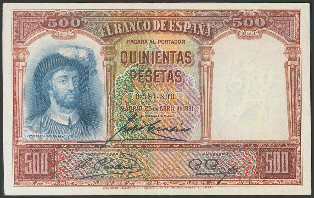 500 pesetas. April 25, 1931. Without series. (Edifil 2017: 361). Extremely Fine.