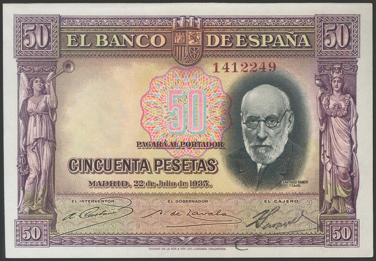 50 Pesetas. July 22, 1935. Without series. (Edifil 2017: 366). Original sizing. Uncirculated.