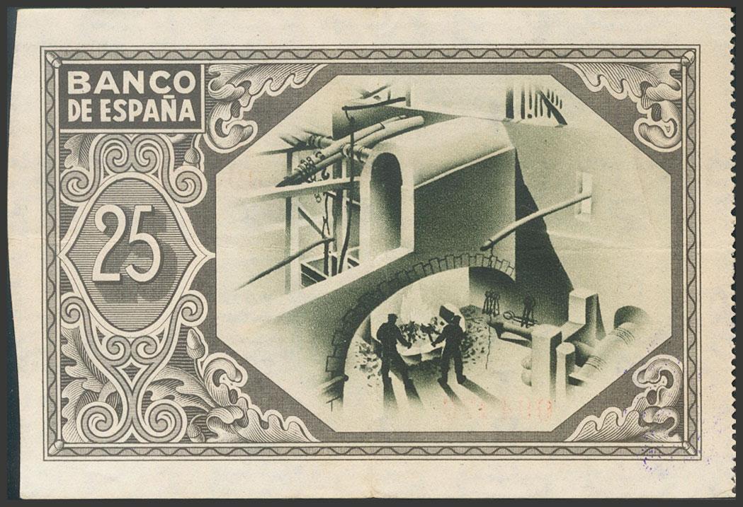 25 Pesetas. January 1, 1937. Bilbao Branch, with the former Vizcaína Savings Bank. (Edifil 2017: 388a). Extremely Fine.