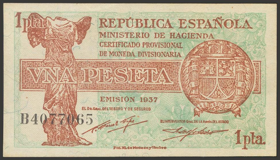 English 1 peseta. 1937. Series B. (Edifil 2017: 392). Original sizing. Almost Uncirculated.