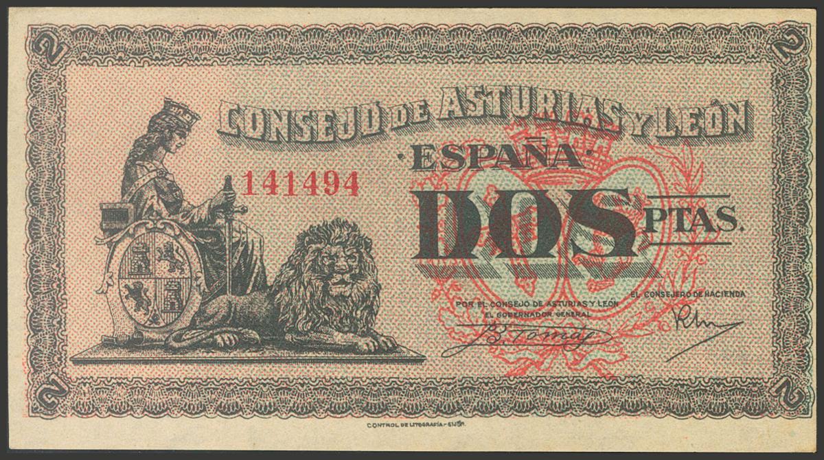 2 Pesetas. 1937. Asturias and León. No serie. (Edifil 2017: 398). Original sizing. Almost Uncirculated.