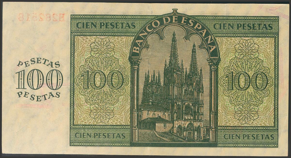 English 100 pesetas. November 21, 1938. Series E. (Edifil 2017: 421a). It retains a large part of its original size. Extremely Fine.