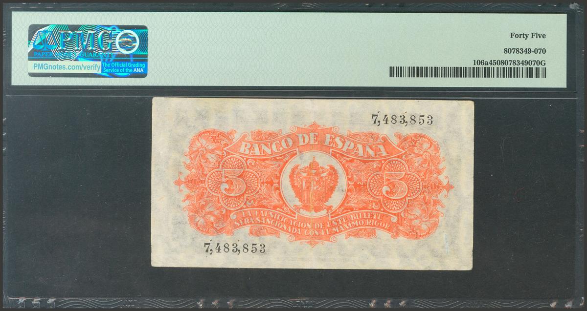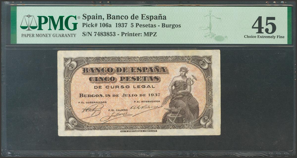 5 Pesetas. July 18, 1937. Without series. (Edifil 2017: 424). Almost Extremely Fine. Encapsulated PCGS45.