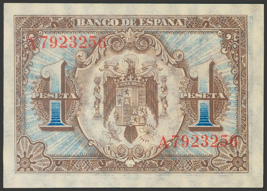 1 peseta. January 1, 1940. Series A. (Edifil 2017: 441a). It retains a large part of its original size. Uncirculated.