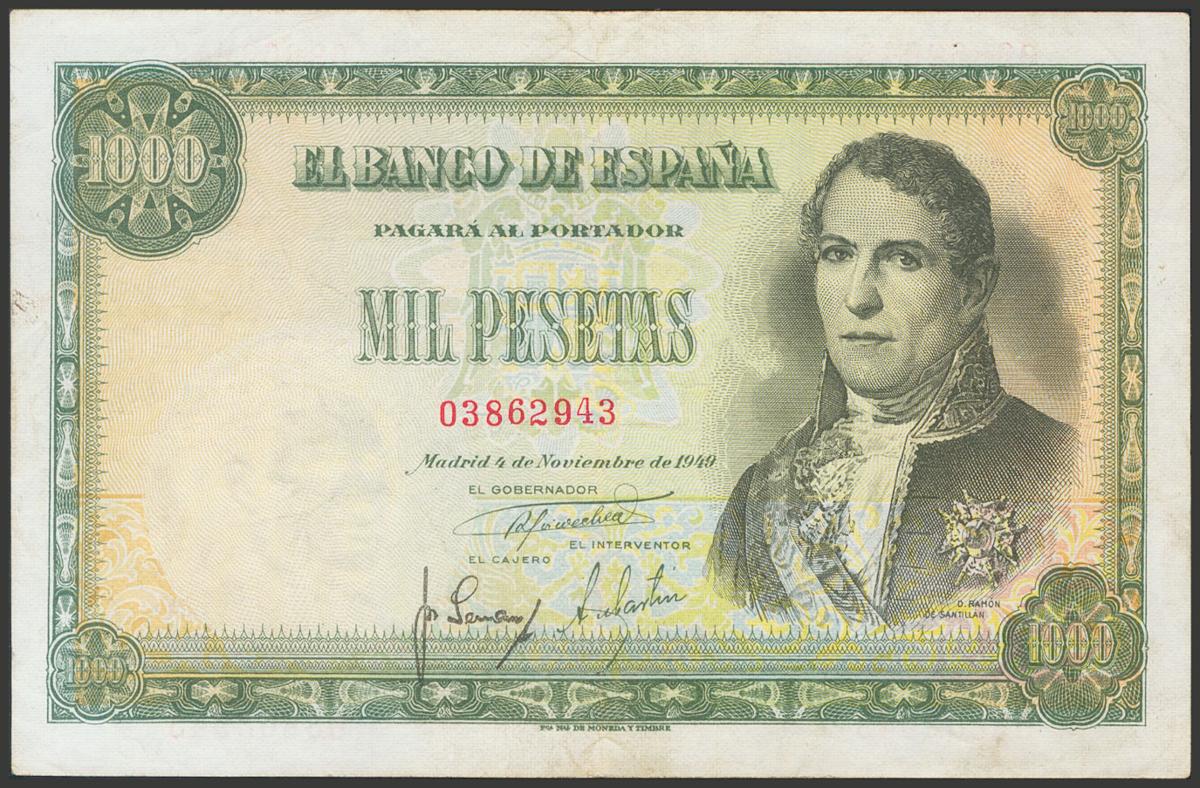1000 Pesetas. November 4, 1949. Without series. (Edifil 2017: 458). Very Fine.
