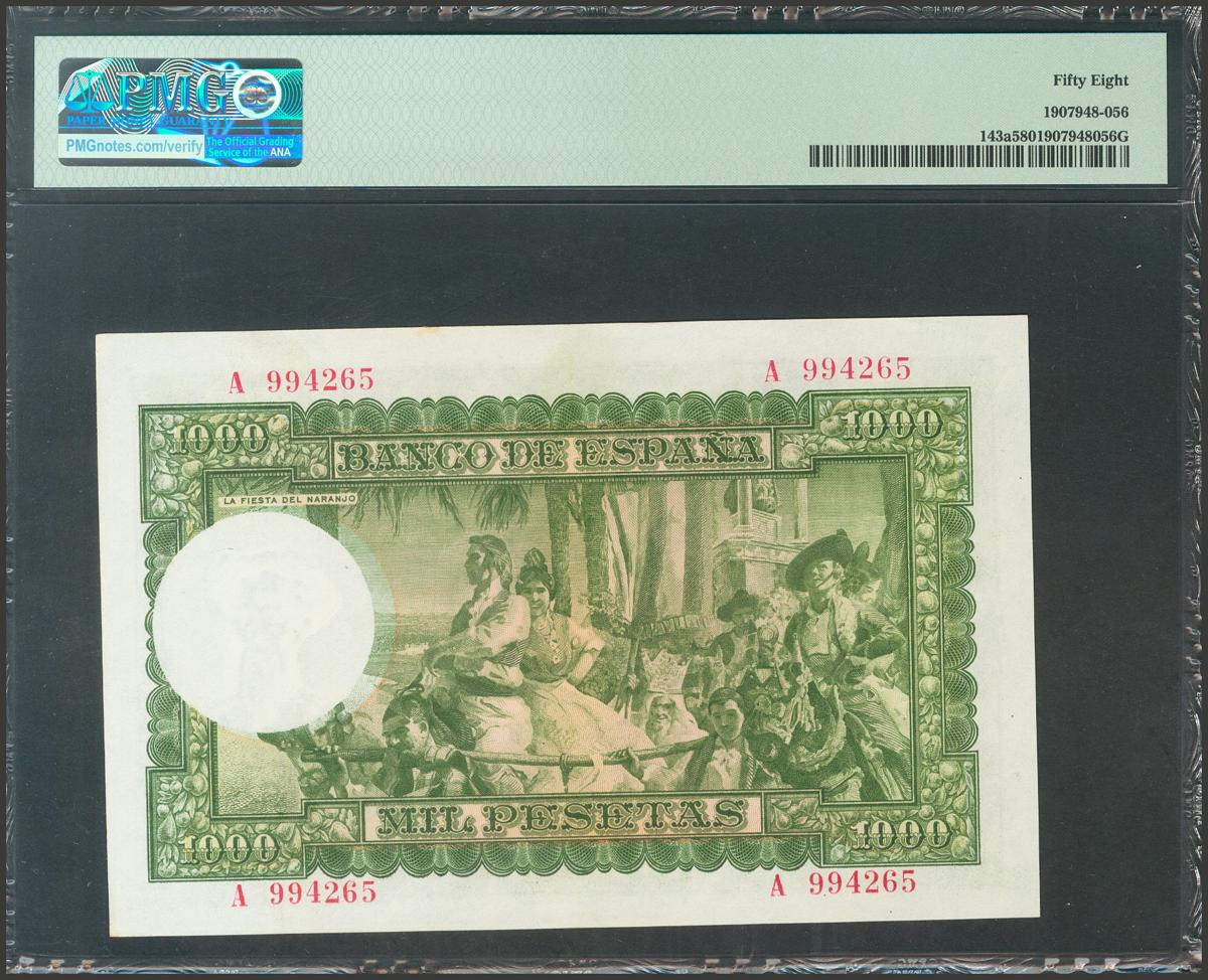 1000 Pesetas. December 31, 1951. Series A. (Edifil 2017: 463a). Good Extremely Fine. PMG58 package.
