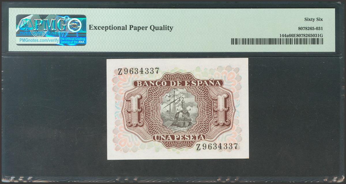 1 peseta. July 22, 1953. Series Z. (Edifil 2017: 465a). Original sizing. Uncirculated. Package PCGS66EPQ.