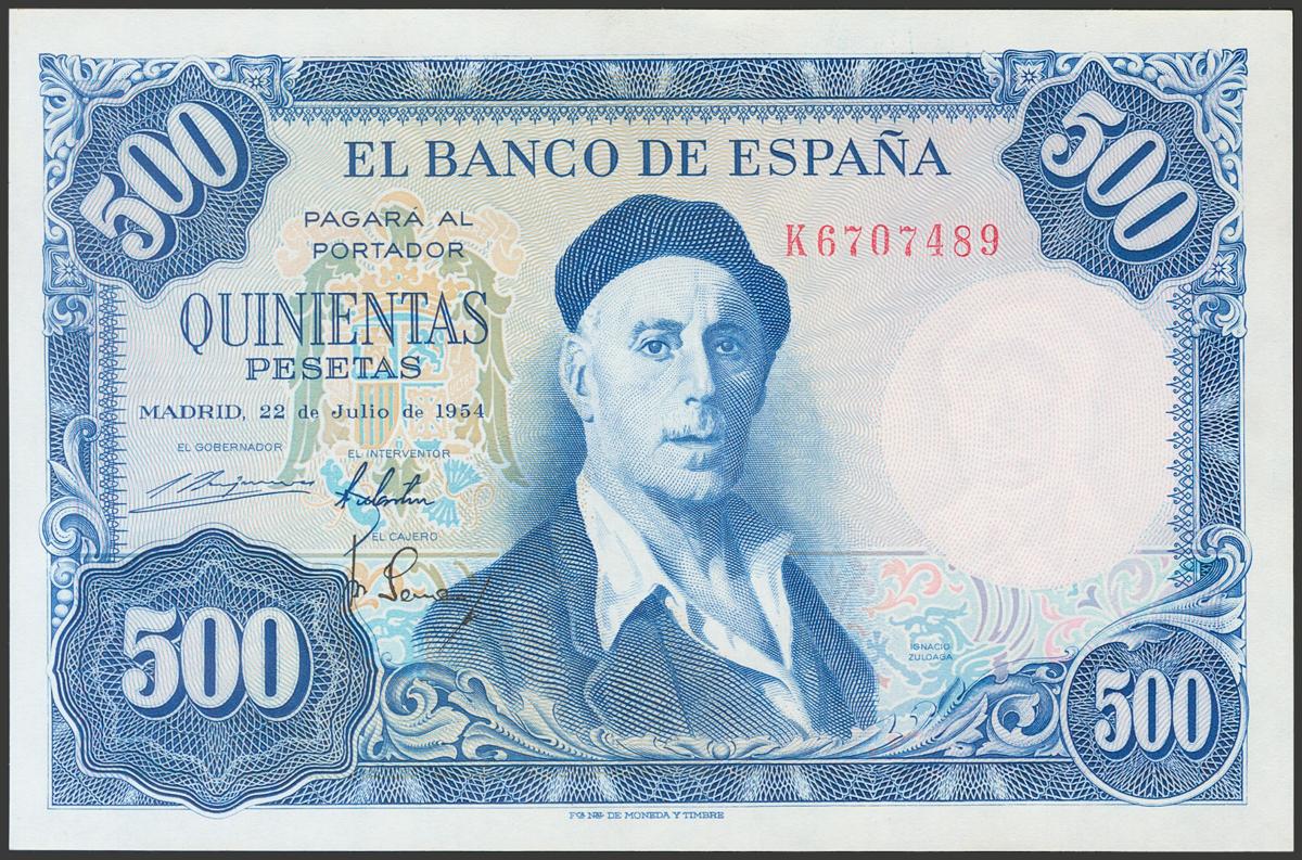 English 500 pesetas. July 22, 1954. Series K. (Edifil 2017: 468b). It keeps all its original size. Uncirculated.