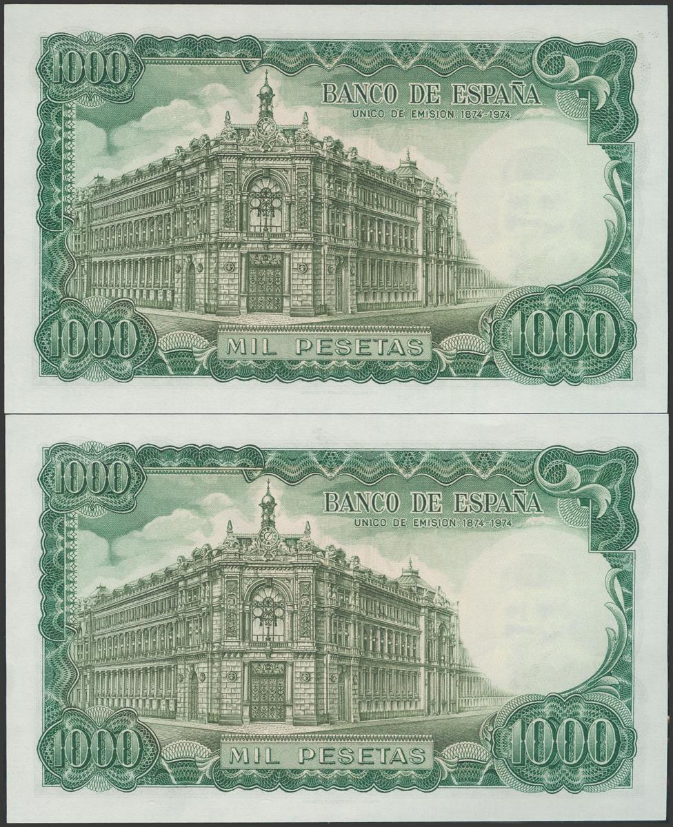 1000 Pesetas. September 17, 1971. Correlative pair. 3U series. (Edifil 2017: 474c). Original sizing. Uncirculated.
