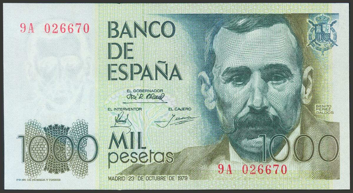 1000 Pesetas. October 23, 1979. Series 9A. (Edifil 2017: 477b). Unusual Uncirculated.