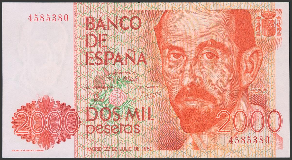 2000 pesetas. July 22, 1980. Without series. (Edifil 2017: 479). Uncirculated.