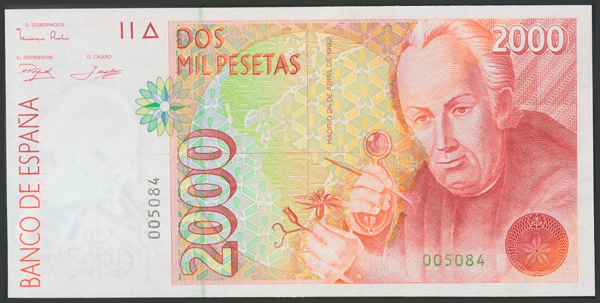 2000 pesetas. April 24, 1992. No series and low numbering. (Edifil 2017: 482). Uncirculated.