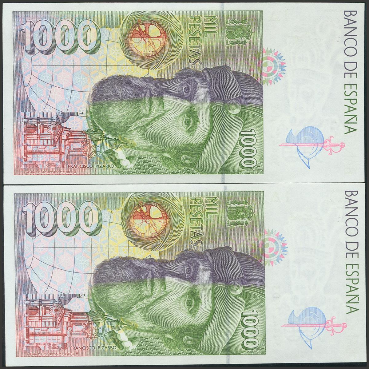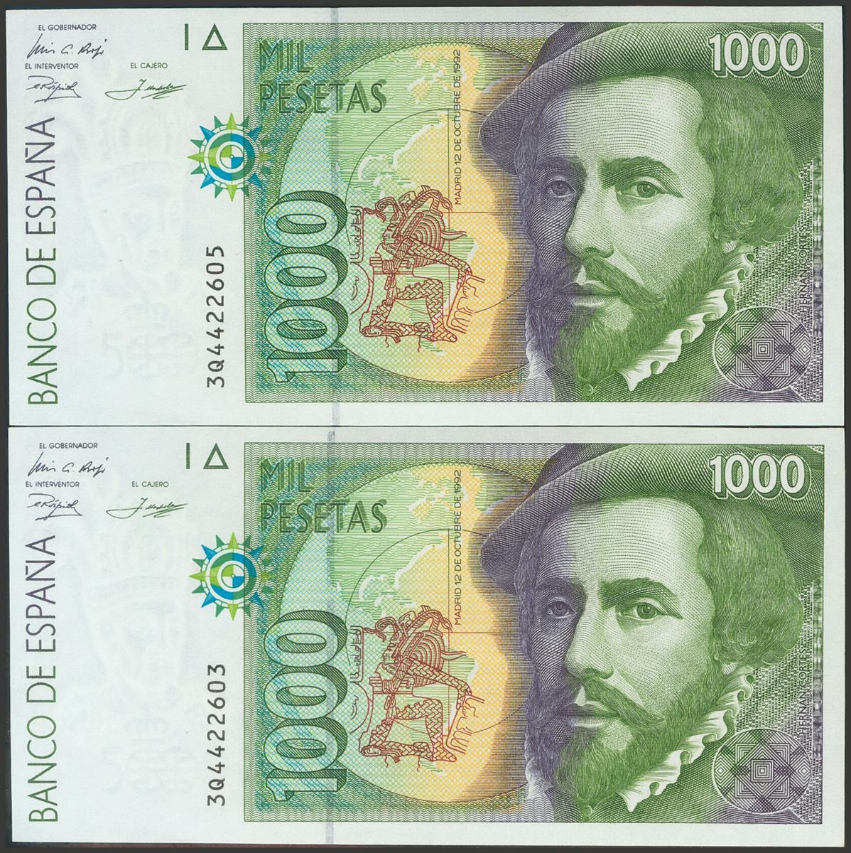 1000 Pesetas. October 12, 1992. Correlative couple. 3M series. Type II (dark eyelid). (Edifil 2017: 483b). Uncirculated.