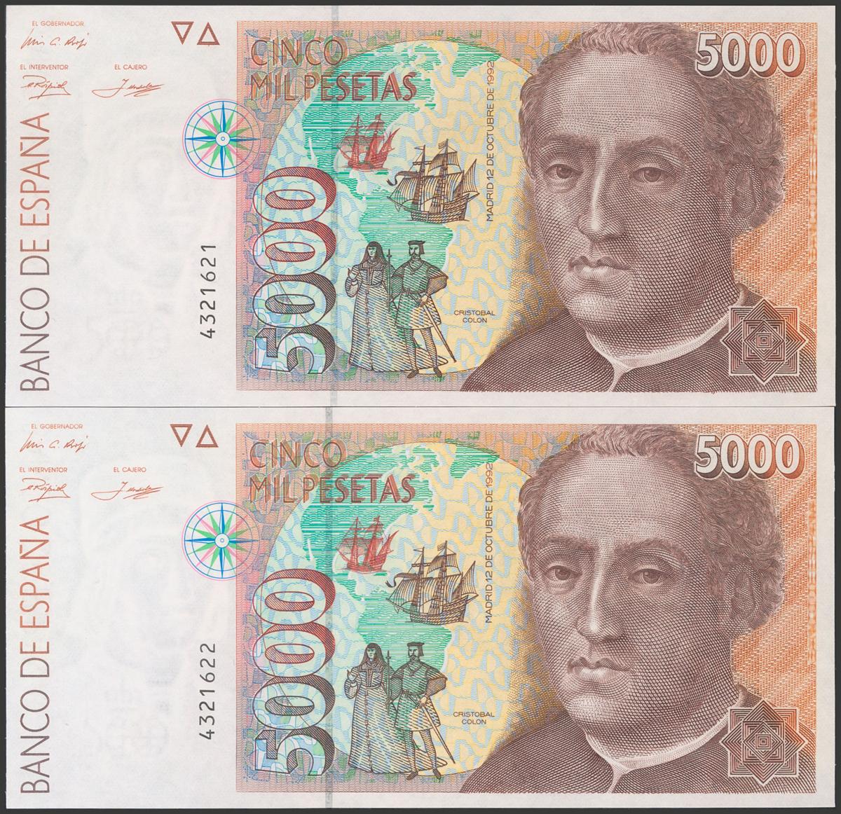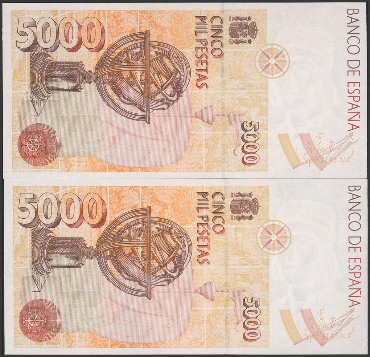 English 5000 pesetas. October 12, 1992. Correlative couple. No serie. (Edifil 2017: 484). Uncirculated.