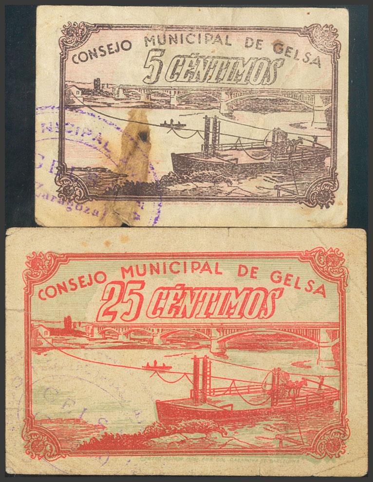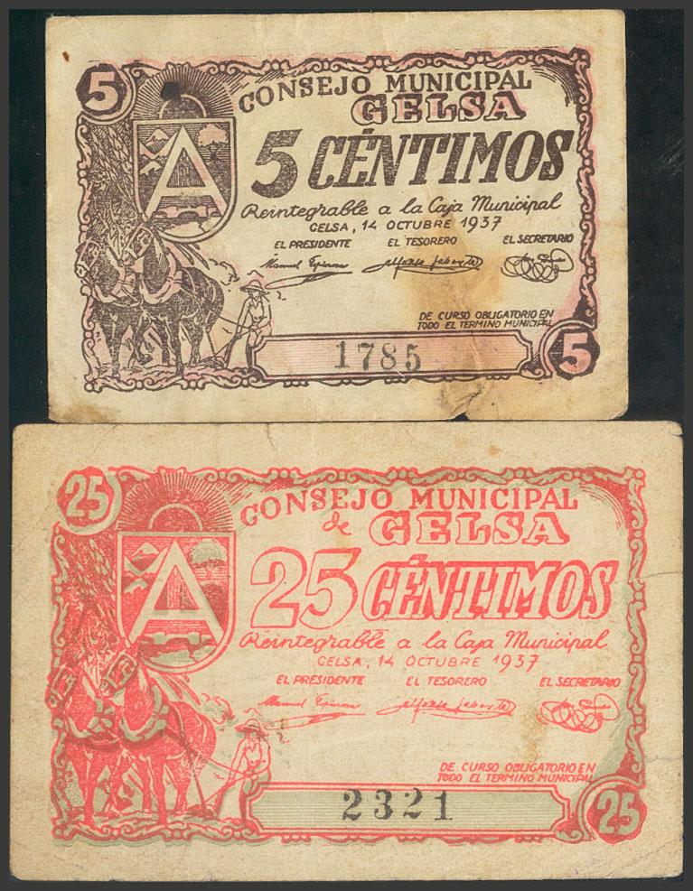 GELSA (ZARAGOZA). 5 Cents and 25 Cents. October 14, 1937. (González: 2638, 2639). Unusual Very Fine.