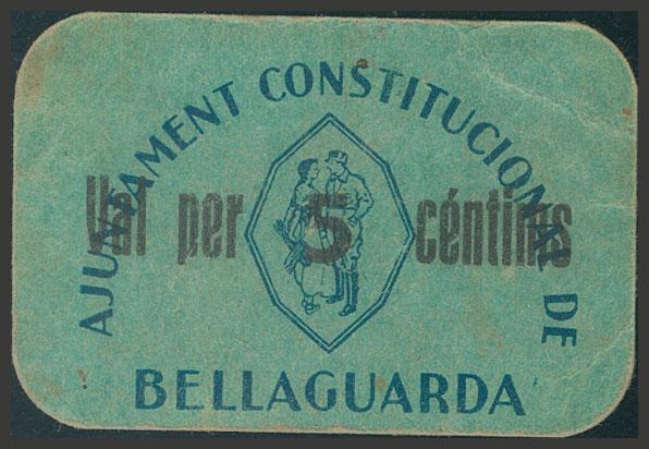 BELLAGUARDA (LERIDA). 5 Cents. (1937ca). (González: 6956). Extremely Fine.