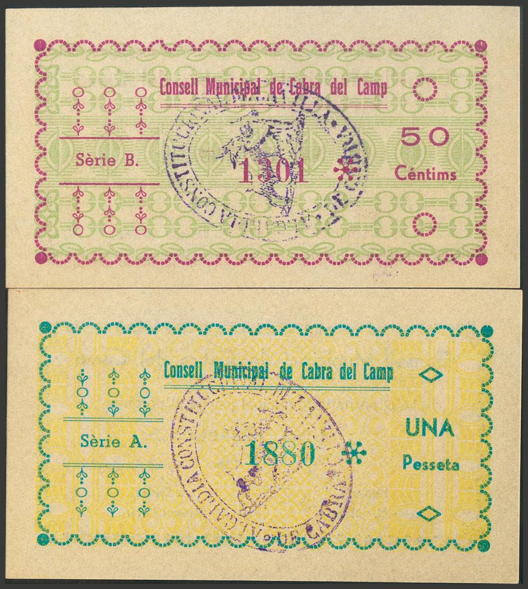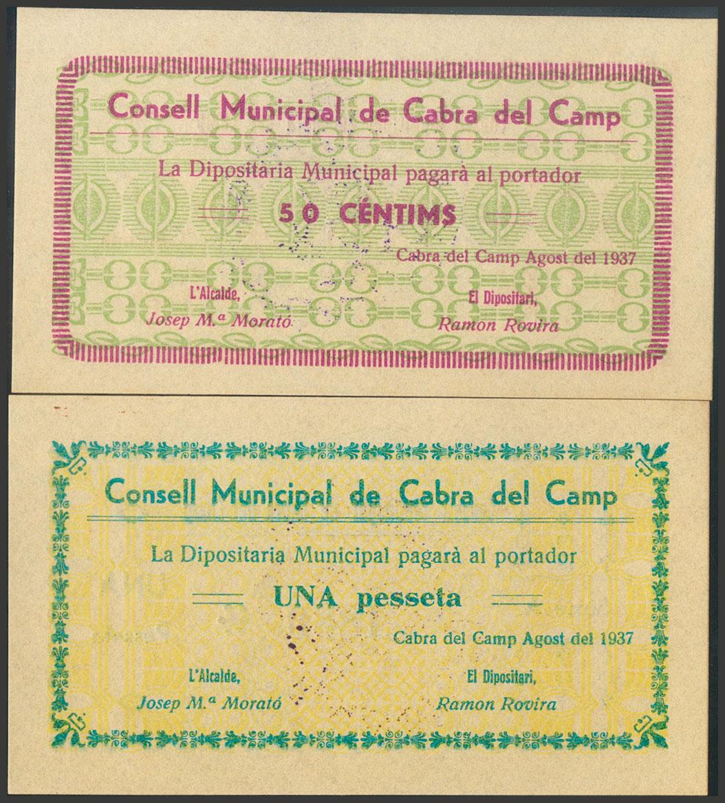 CAMP GOAT (TARRAGONA). 50 Cents and 1 Peseta. August 1937. Series B and A, respectively. (González: 7226/27). Rare complete series. Uncirculated.