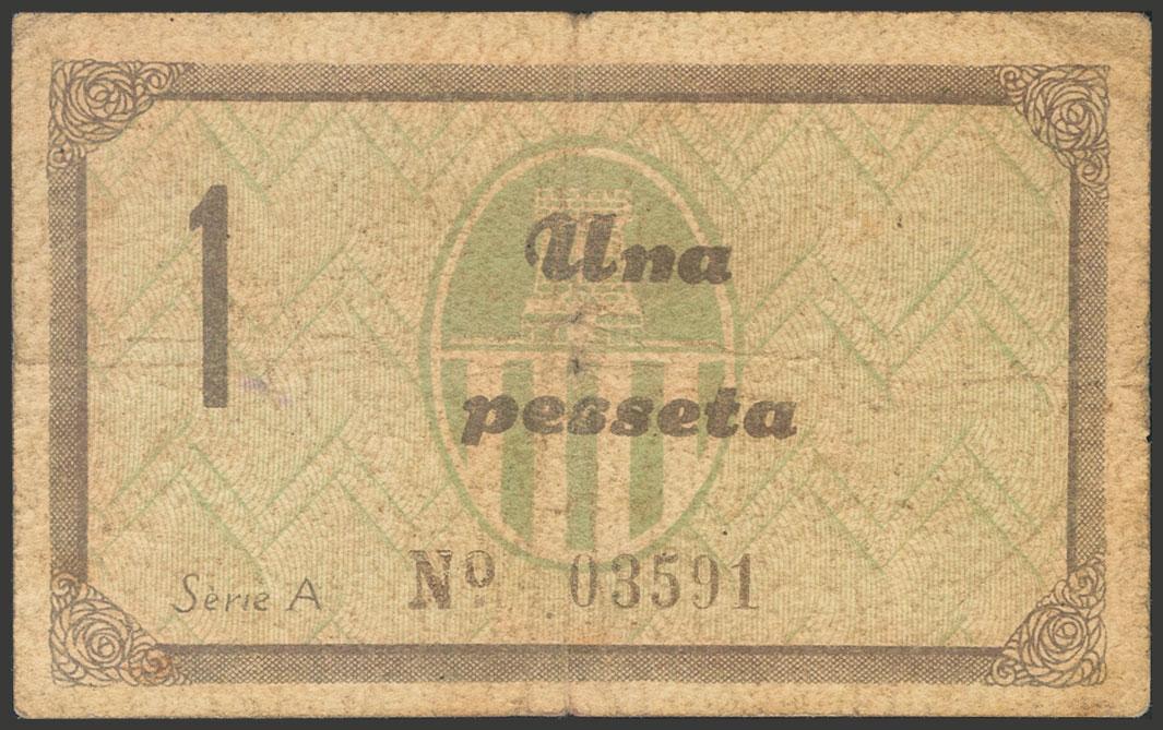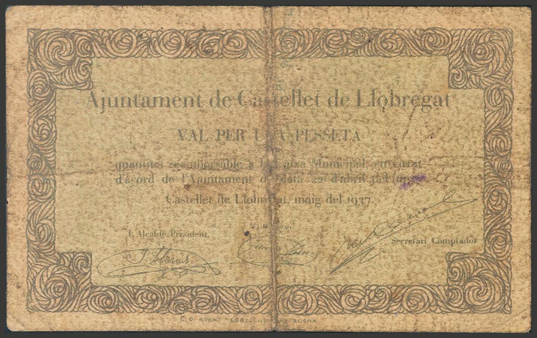 CASTELLET DE LLOBREGAT (BARCELONA). 1 peseta. May 1937. Series A. (González: 7451). Good Fine.