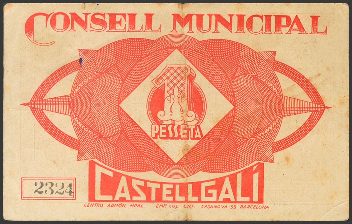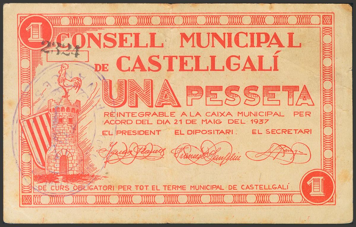 CASTELLGALI (BARCELONA). 1 peseta. May 21, 1937. (González: 7467). Unusual Good Very Fine.