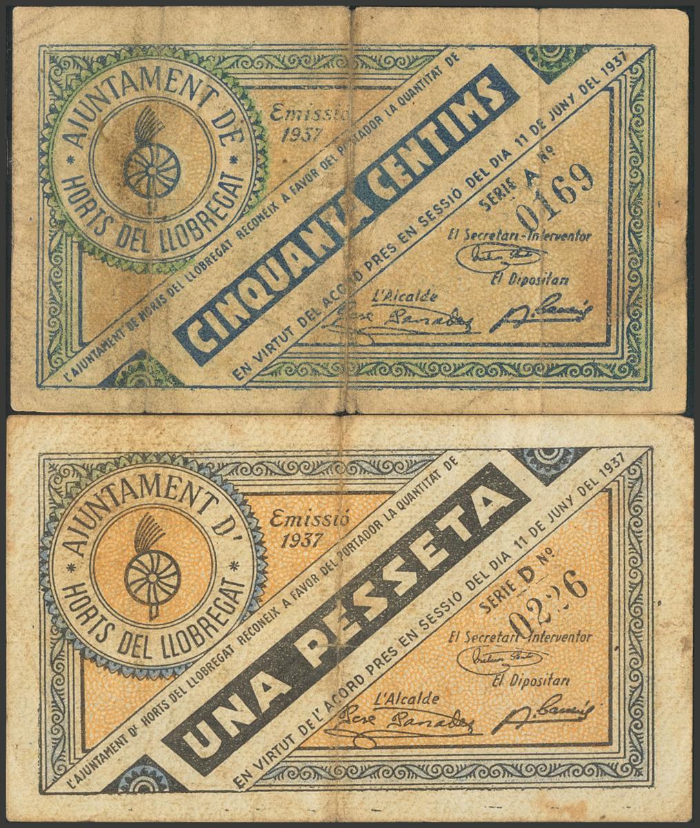 HORST DEL LLOBREGAT (BARCELONA). 50 Cents and 1 Peseta. July 11, 1937. Series A and D, respectively. (González: 8203/04). Unusual complete series. Very Fine.