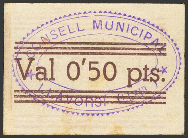 LLAVORSI (LERIDA). 50 cents. (1937ca). (González: 8356). Rare Extremely Fine.