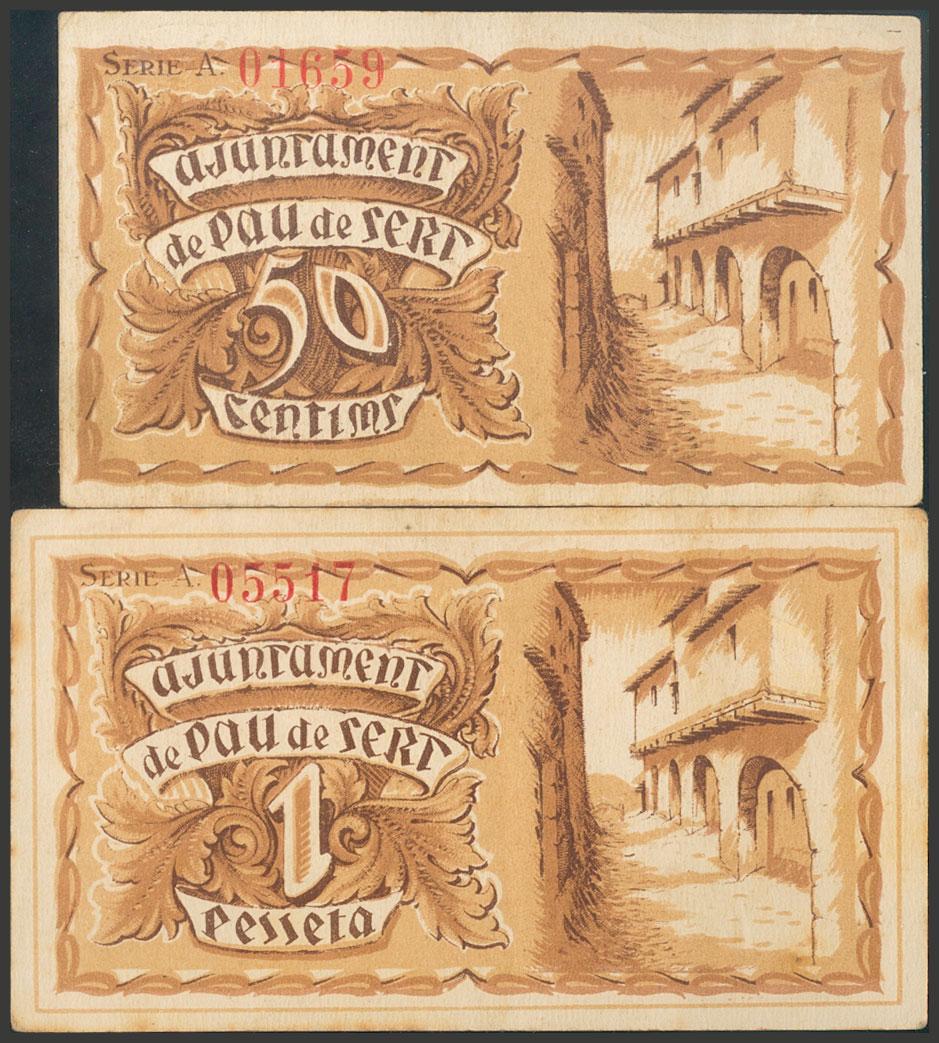 PAU DE SERT (GERONA). 50 Cents and 1 Peseta. May 25, 1937. Series A, both. (González: 9171/72). Rare complete series. Almost Extremely Fine.