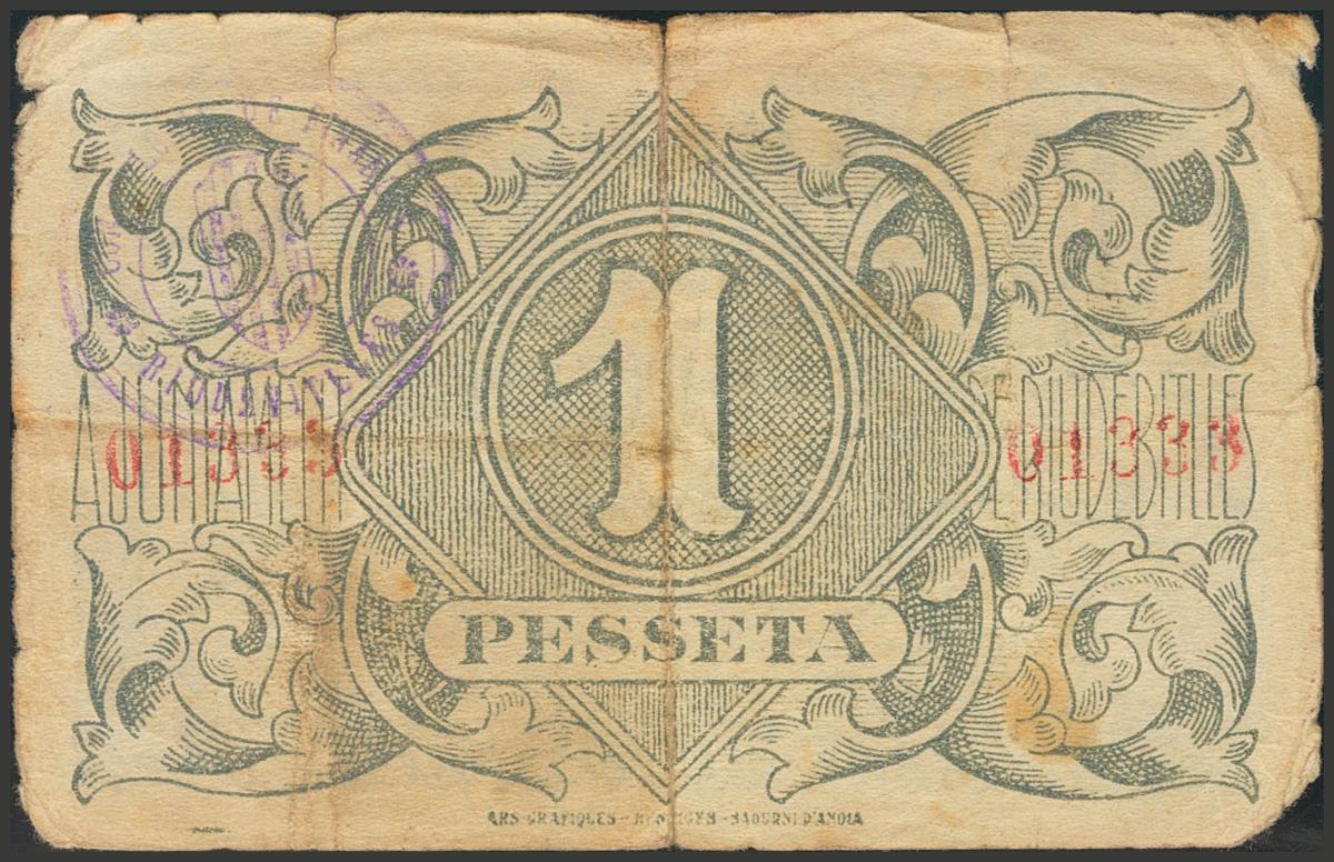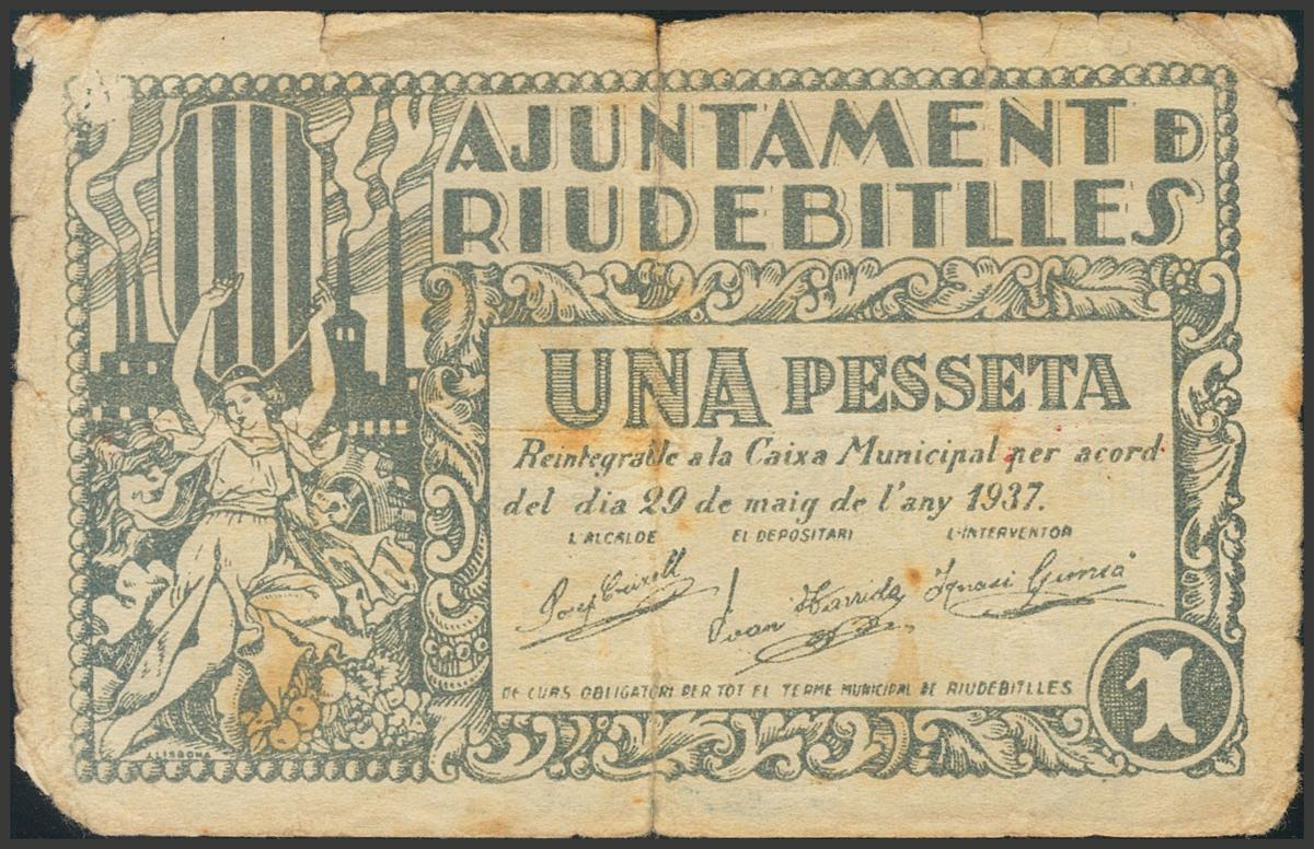 English RIUDEBITLLES (BARCELONA). 1 peseta. May 29, 1937. (González: 9677). Rare Very Good.