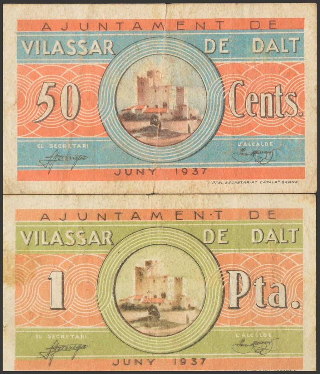 VILASSAR DE DALT (BARCELONA). 50 Cents and 1 Peseta. June 1937. (González: 10855, 10856). Very Fine.