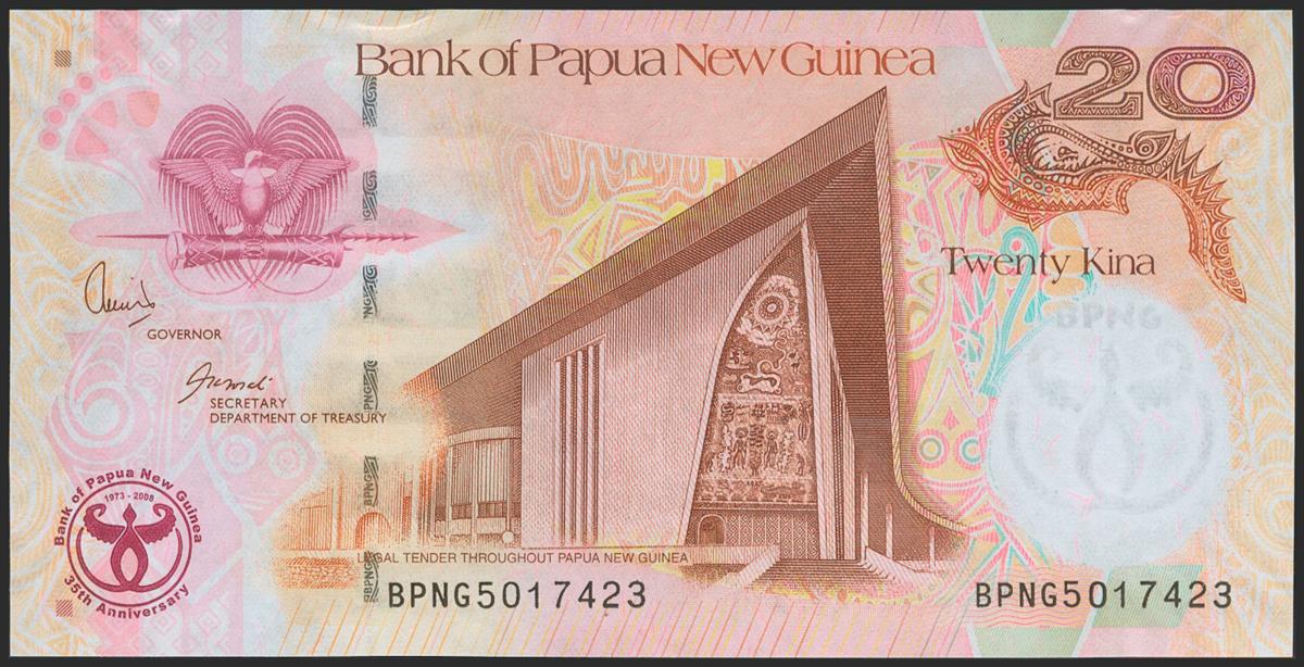 PAPUA NEW GUINEA. 20 Kina. 2008. (Pick: 36a). The usual counting mark on top edge. Uncirculated.