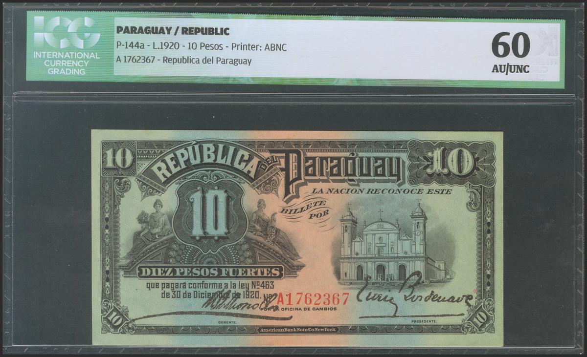 PARAGUAY. 10 pesos. 1920. Series A. (Pick: 144a). ICG60.